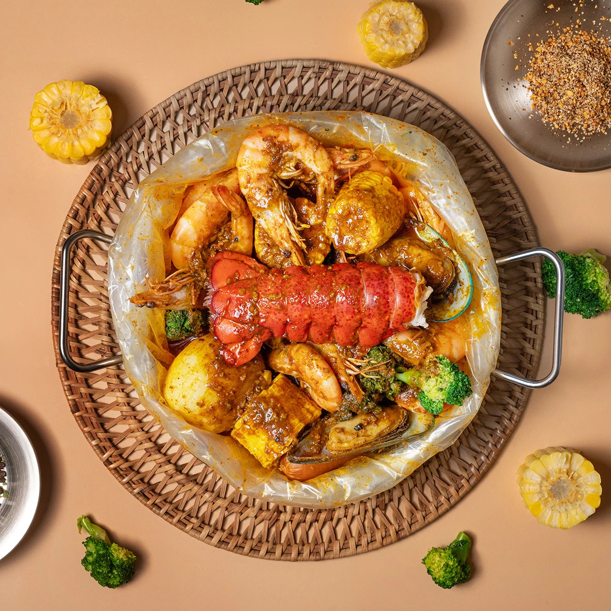 - KEVIN'S LOBSTER TAIL (2인분): 랍스터 꼬리 + 해산물 구성 – 58,000원