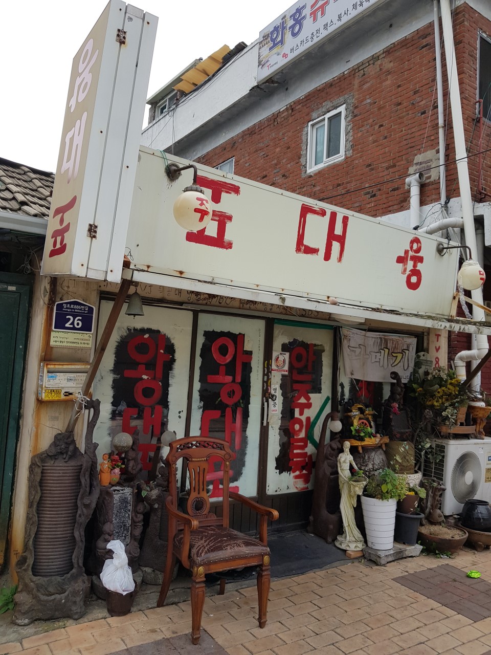 수원 정조로 골목 안쪽에 자리한 ‘뚱땡이 왕대포’는 특별한 조미료 없이 깊은 맛을 우려낸 김치찌개와, 부침가루 대신 녹두를 직접 갈아 만든 녹두빈대떡, 정성껏 손질한 황태구이 등 옛날 할머니 집 밥상 같은 구수한 가정식을 만날 수 있는 공간입니다. 식당 내부는 아담하지만 따뜻한 분위기로, 현지인들의 회식 장소나 단골 손님들의 모임 장소로도 자주 이용됩니다.