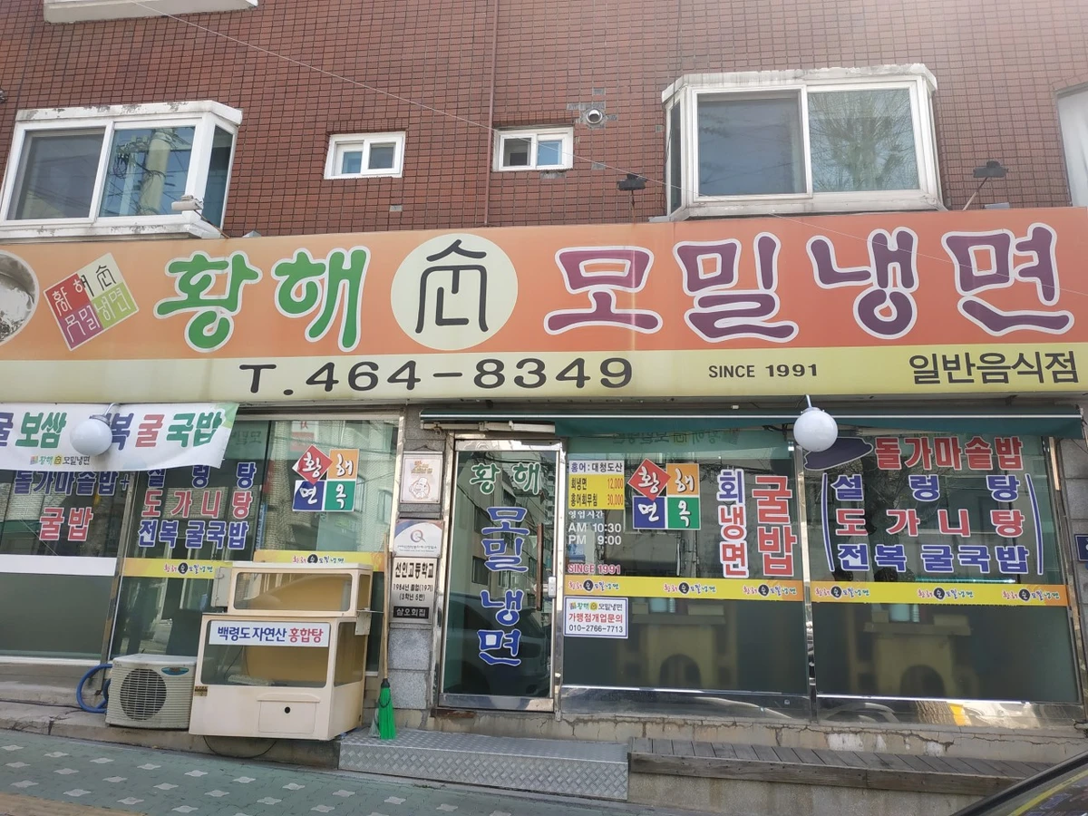 황해순모밀냉면은 인천 남동구 만수동 895-41에 위치한 30년 경력의 황해도식 메밀냉면 전문점입니다. 김계천 대표는 전통 레시피를 고집하며 매일 손수 면을 준비하고 육수를 끓입니다. 시원하면서도 깊은 맛의 냉면은 꾸준히 계절별 고객의 발걸음을 부르고 있습니다.