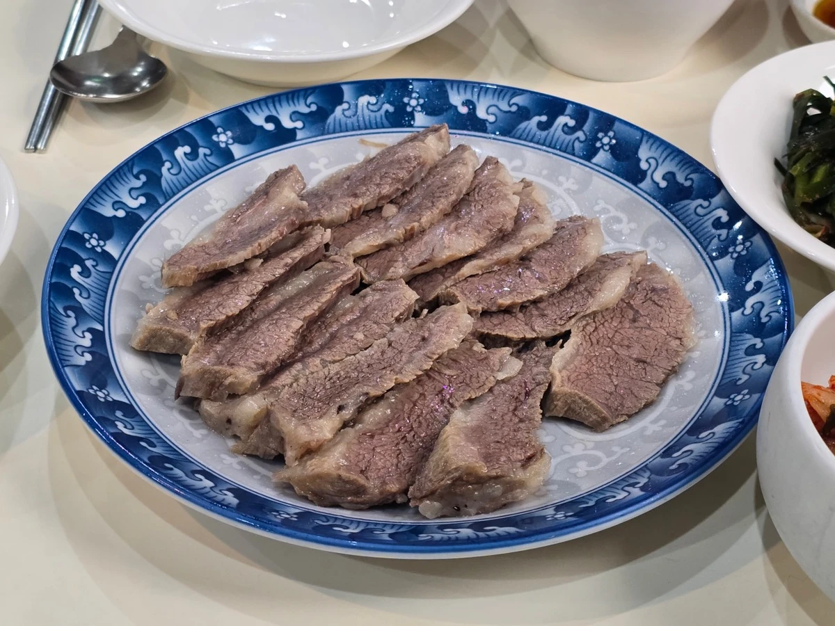 안동국시는 서울 강남구 언주로167길 제일빌딩 2층에 위치한 전통 국수 전문점입니다. 처음 국수집을 시작한 1대 사장님의 손맛과 방식을 그대로 이어받아 1997년부터 한승국 대표(76세)가 직접 면을 만들며 운영해오고 있습니다. 이곳의 핵심은 수작업으로 반죽해 숙성시킨 콩가루 함유 면발. 밀가루와 콩가루를 7:3 비율로 섞어 만든 반죽을 얇게 펴 숙성한 후 칼로 썰어 만듭니다. 기계를 쓰지 않는 이유는 콩가루 반죽이 산화되면 고약한 냄새가 나기 때문이라고 합니다. 대표 메뉴는 바로 건진국수. 면을 육수에 직접 끓이지 않고, 따로 건져낸 뒤 차갑게 식힌 육수에 고명과 함께 담아내는 방식입니다.