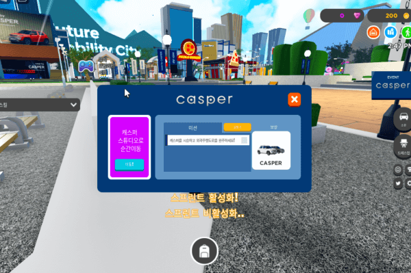 로블릭스에서 현대 모빌리티 어드벤처에서 캐스퍼의 내부, 외부 등을 볼 수 있었습니다.